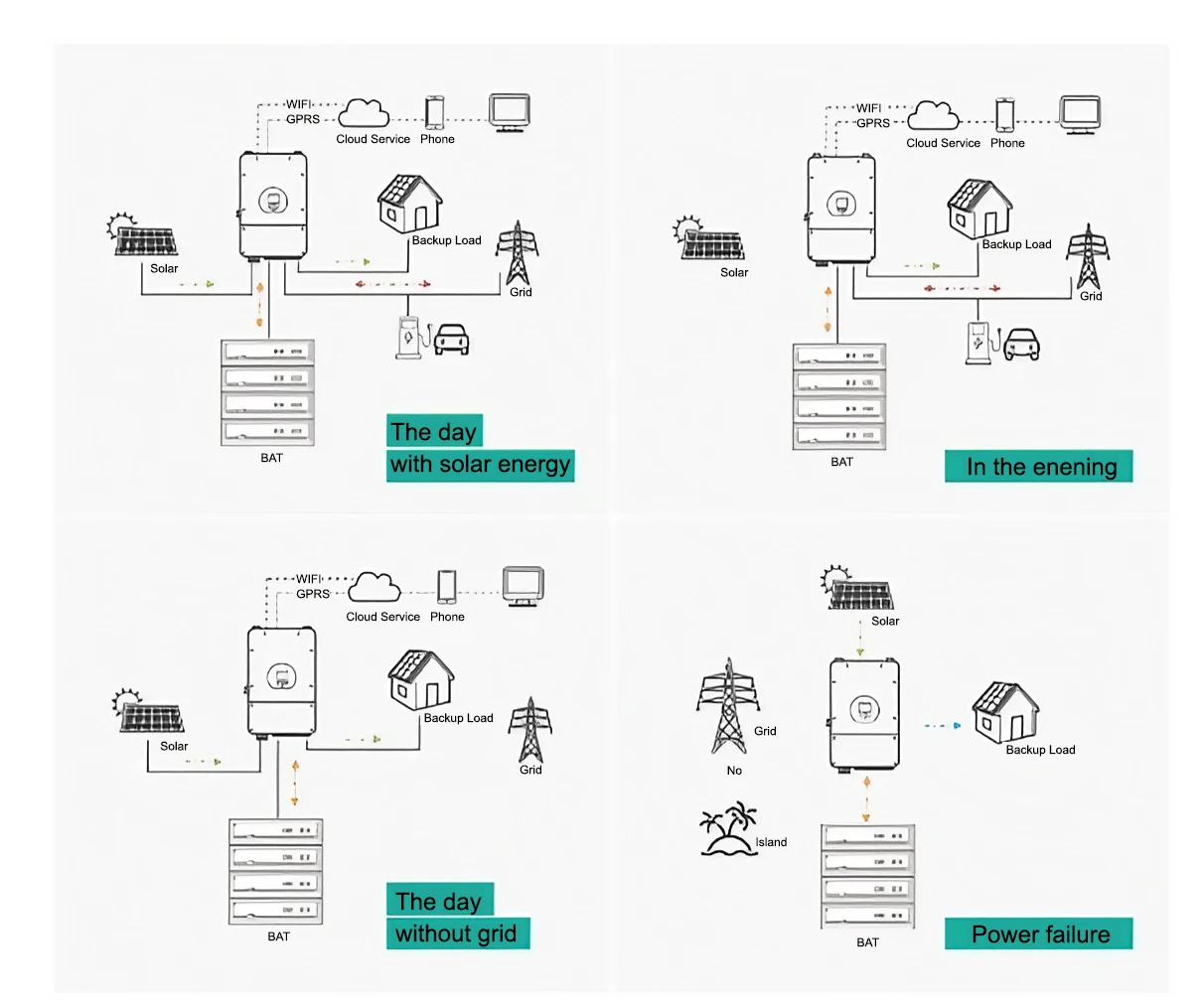 RS232-PC, RS485(B)-BAT, RS485(A)-Inverter, Canbus-Inverter